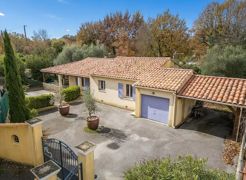 A vendre, avec vos agences SWEET HOME, sur la commune de FORCALQUEIRET : Idéalement située, cette maison de plain-pied construite en 2001 offre une surface habitable d'environ 95 m², implantée sur un terrain plat, clôturé, arboré et aménagé de 800 m². Elle dispose d'une piscine chauffée (installée en 2024), d'un abri voiture, d'un garage ainsi que d'une vaste terrasse couverte. L'entrée dessert un salon/salle à manger agrémenté d'une cheminée insert, une cuisine indépendante, aménagée et équipée, trois chambres, une salle de bains et un WC séparé. Le bien se trouve dans un quartier résidentiel calme et à proximité immédiate des premières commodités. Eric INZERILLO (EI) Agent Commercial - Numéro RSAC : 983656034 - Draguignan.