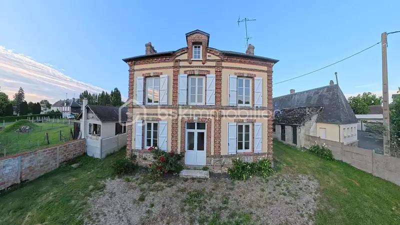 Dans un cadre paisible et verdoyant, découvrez cette charmante maison individuelle au caractère typique de la région, avec sa façade en briques et pierre. D'une surface habitable d'environ 95 m², elle est implantée sur un beau terrain arboré et entièrement clôturé de 689 m².
