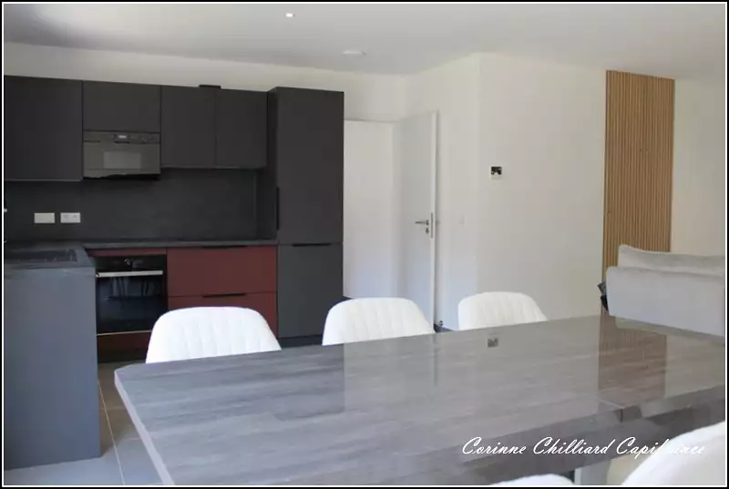 Dès l'entrée, vous profiterez de rangement et visualiserez la cuisine équipée ouverte sur un séjour lumineux de 45 m².