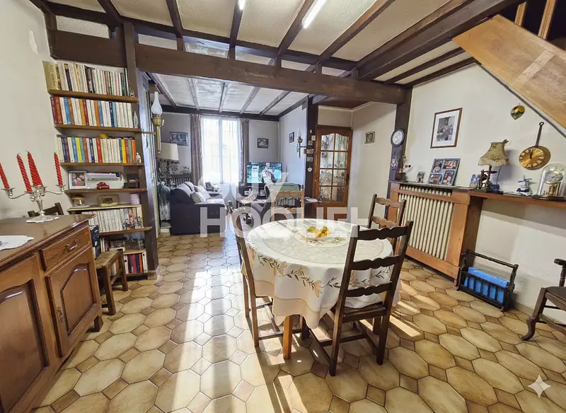 Découvrez cette maison de 95 m² habitables, offrant un bel espace de vie et un véritable potentiel d'aménagement. Dès l'entrée, vous accédez à un séjour et une salle à manger offrant un volume agréable et lumineux, parfait pour créer un espace de vie convivial. Dans la continuité, se trouvent une salle d'eau avec WC ainsi qu'une cuisine ouverte sur le séjour, donnant directement accès au jardin situé à l'arrière de la maison, idéal pour profiter des beaux jours. A l'étage, un palier dessert deux chambres. Les combles aménagés offrent quant à eux deux belles pièces supplémentaires avec une hauteur sous plafond appréciable, laissant libre cours à vos projets : chambres, bureau ou salle de jeux. Des travaux sont à prévoir, mais la maison présente un beau potentiel et de nombreuses possibilités d'agencement.