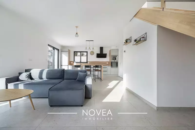 NOVEA immobilier à le plaisir de vous proposer à la vente cette charmante maison mitoyenne de 95,20m², construite en 2022, idéalement située sur la commune recherchée de Reyrieux. Moderne, lumineuse et parfaitement entretenue, elle offre un cadre de vie paisible et familial.