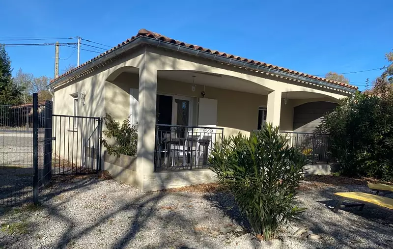 Cet ensemble indissociable de deux maisons mitoyennes de plain-pied, construites en 2021 à Saint-Alban-Auriolles, offre un cadre de vie lumineux, calme et tourné vers la nature, à seulement quelques minutes du village animé de Ruoms.