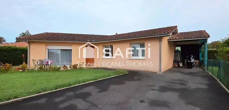 Située à Tercis-les-Bains (40180), cette propriété offre un cadre de vie paisible dans un village paisible proche de Dax, desservi par la navette et bus. Toutà proximité : pôle médicale(médecins et infirmières), commodités essentielles telles qu'une école, une crèche, supérette et coiffeur. Bénéficiant d'une exposition sud, cette maison est implantée sur un terrain en hauteur de 614 m², offrant un jardin soigné, une allée goudronnée, un carport transformable en garage, et une place de parking extérieure et couverte.