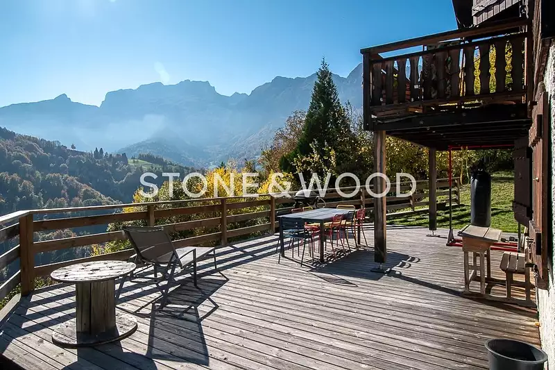 En annexe, un second chalet avec garage double et studio indépendant de 25 m2, doté d'une terrasse privative exposée sud-ouest.