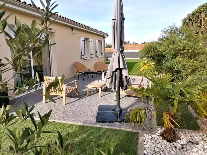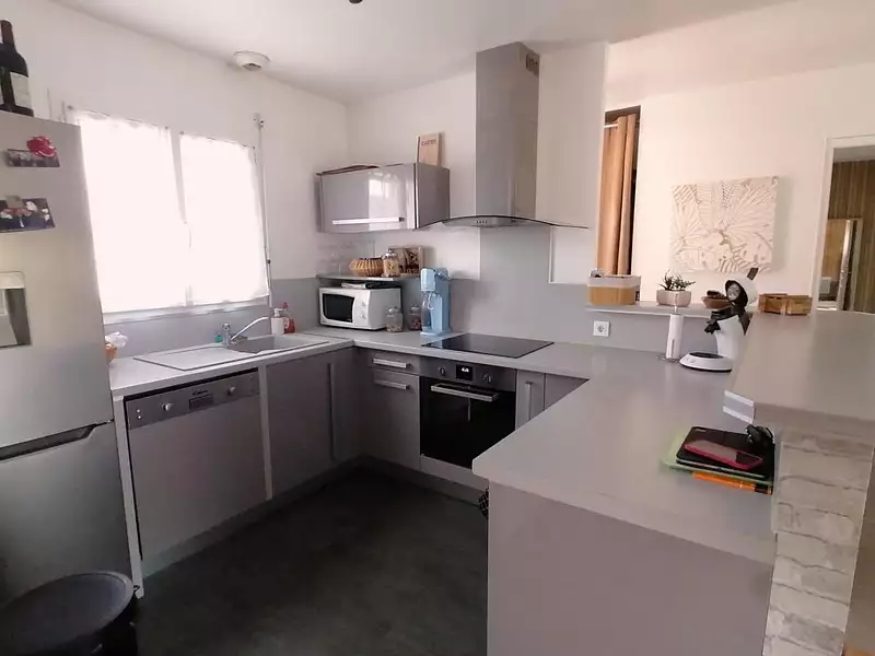 Maison plain pied d'environ 95m2 construite en 2013 sur un joli terrain clos et arboré de 755m2, composée d'un hall d'entrée avec placard, d'une cuisine aménagée / équipée ouverte sur salon/séjour de 45m2 avec baie vitrée ouvrante sur une belle terrasse, un couloir desservant 3 chambres avec placards, un WC séparé et une SDE.