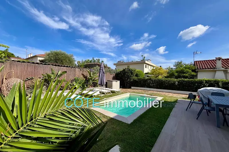 ANTIBES Secteur Tramontane au calme, Venez découvrir cette jolie Maison de plain-pied individuelle d'environ 96 m² + véranda de 8 m² sur un terrain de 500m² ou vous pourrez profiter de la terrasse ensoleillée et de la piscine pour vous rafraichir. A quelques minutes à pied des plages de Juan les pins, des commerces et des transports en communs.