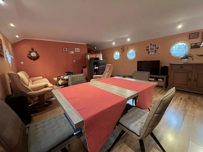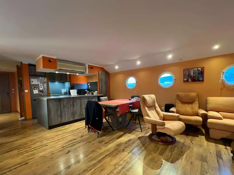 Cette péniche inclut une habitation indépendante et s'adresse à ceux en quête d'un lieu de vie originale, calme et serein. Idéale pour les amoureux de la nature et du cadre fluvial.