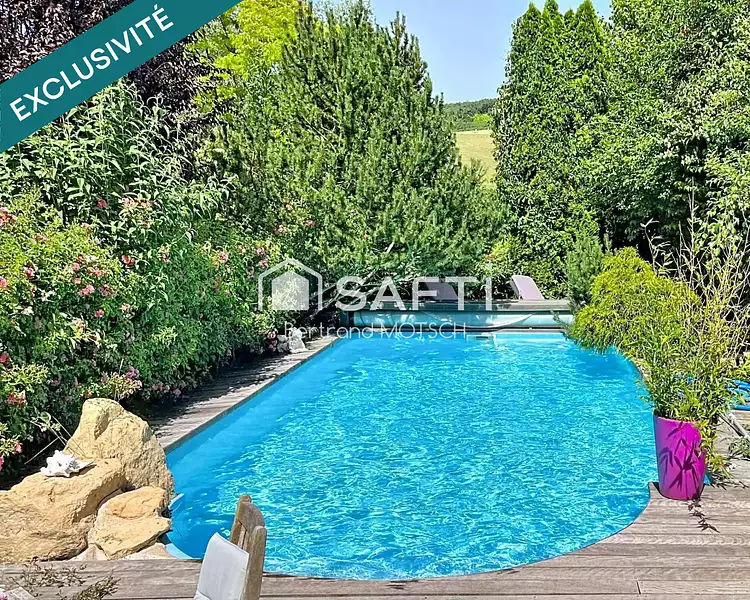 Implantée sur un terrain de 1092 m², cette demeure offre un grand jardin arboré sans vis-à-vis, agrémenté d'une cabane en bois, d'un cabanon et d'une piscine chauffée. Dotée d'une conception pensée pour le confort et l'intimité, cette propriété saura combler les amateurs de moments conviviaux en famille. Avec ses 11 ares de terrain, cette maison offre un cadre idéal pour profiter pleinement du calme et de la sérénité à proximité des frontières.