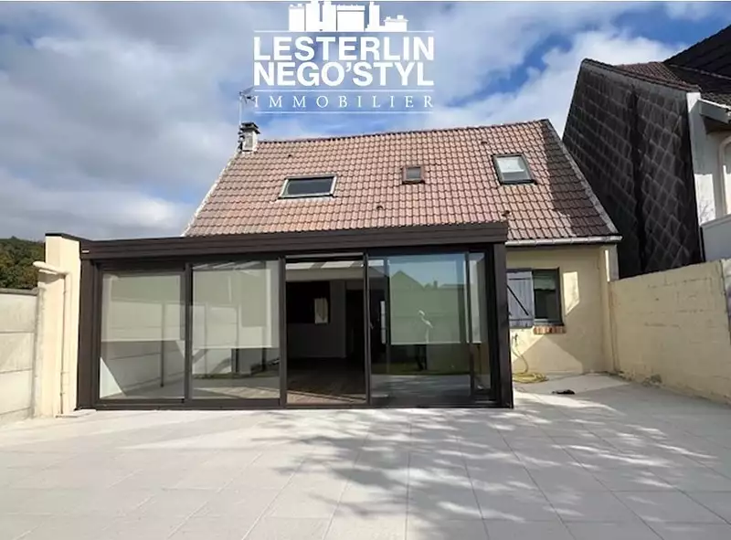 Jolie maison à proximité de la forêt de Montgeon, avec une belle veranda donnant sur le jardin, Exposition OUEST, comptenant au RDC Séjour Salon ouvert sur Véranda et Cuisine aménagée équipée, Chambre, SDD; au 1er étage 2 Chambres, SDB avec WC....