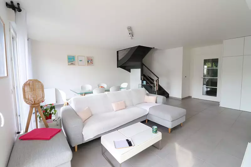 Découvrez cette magnifique maison individuelle, mitoyenne de 96 m², construite en 2017, offrant un agréable cadre de vie et une luminosité optimale grâce à son exposition Est-Ouest. Situé dans un quartier récent de Louveciennes, ce véritable cocon allie modernité et confort pour une vie familiale épanouissante.