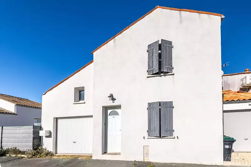 La maison dispose également d'un garage fermé attenant de 15,8 m² et d'une cour/terrasse d'environ 12 m², intime et facile d'entretien.