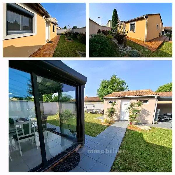 Récupérateurs d'eau avec habillage , bel abri de jardin de 12 m2 , une terrasse couverte de 13,50 m2. jardin agrémenté et clos minimun d'entretien . Pas de travaux.