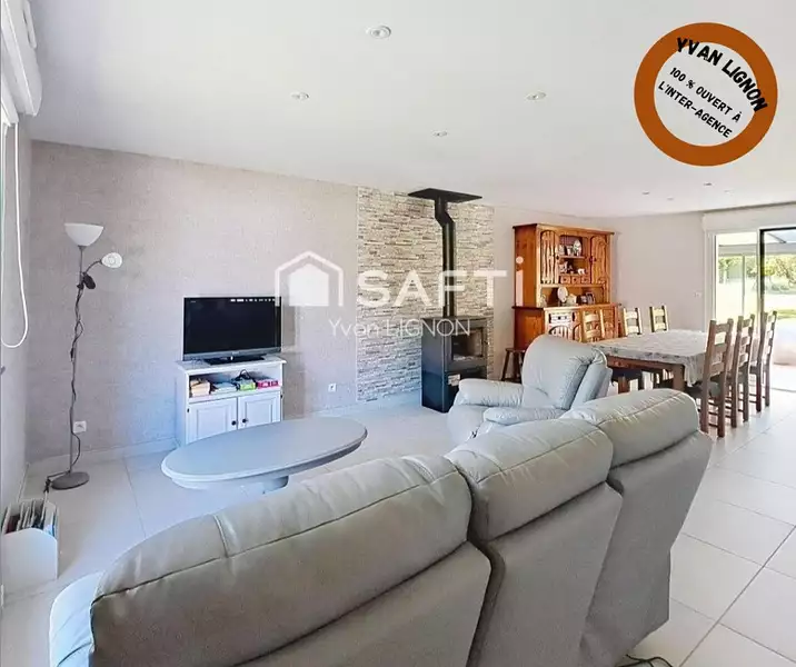 Venez découvrir cette maison parfaitement entretenue composée au rez de chaussée d'une véritable entrée, d'une belle pièce de vie d'environ 40m² avec poêle à bois et cuisine ouverte équipée et aménagée, d'une véranda de plus de 22m², d'une chambre et d'une salle d'eau avec WC.