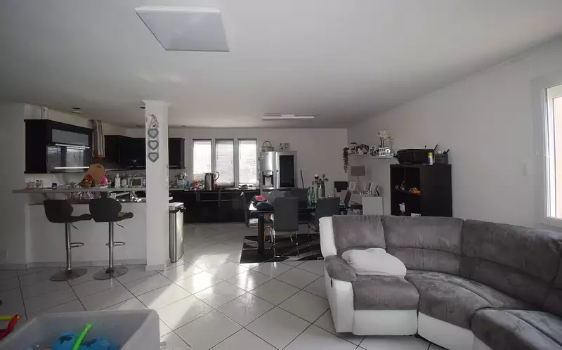 Votre agence VICHY JEANNE D'ARC IMMOBILIER vous propose cette maison d'environ 96 m² habitable construite sur une parcelle d'environ 2200 m² située dans un quartier résidentiel d'une commune proche de Vichy, à Saint-Rémy-En-Rollat. Cette maison offre au rez-de-chaussée une entrée avec placard, une grande pièce de vie traversante de 42 m² avec une cuisine ouverte aménagée et équipée, un dégagement, trois chambres, une salle d'eau et un WC séparé. Une terrasse à l'avant de la maison exposée OUEST permet de profiter des beaux jours. Le rez-de-jardin offre une buanderie, une cave et deux garages avec portes motorisées. Cette construction de 2009 est équipée de menuiseries PVC avec double vitrage, d'un chauffage par poêle à granulés ainsi que de radiateurs électriques. A noter que les combles sont isolés. Prix : 235 000 € honoraires charge vendeurs. Référence à rappeler : VIC0122 Contacter Vichy Jeanne d'Arc Immobilier au 04.70.31.00.50. Ou contacter Romain VIAL au 07.86.11.98.89. Agent commercial inscrit RSAC Cusset n° 824100887. Toutes nos photos sur le site de l'agence JA-immobilier. Agence immobilière face à l'église, quartier Jeanne d'Arc. Les informations sur les risques auxquels ce bien est exposé sont disponibles sur le site Géorisques : www.georisques.gouv.fr.
