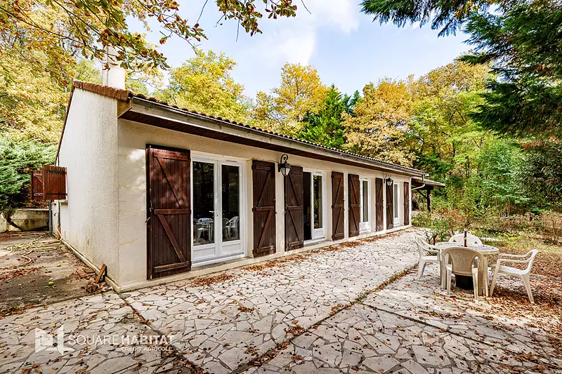 Au coeur d un domaine entouré d arbres et de nature, maison de plain pied avec garage et studio indépendant! elle se compose d 'une entrée, d un séjour avec cheminée, d une cuisine, salle de bains, et trois chambres. également, un espace de vie indépendant, avec chambre et salle d'eau idéal pour votre ado ou vos amis! maison des années 80 , un rafraichissement est a prévoir, ainsi que du modernisme pour votre cuisine et la salle de bains! tennis, piscine et pétanque sont a disposition au sein du domaine! A 30 min de Bordeaux!