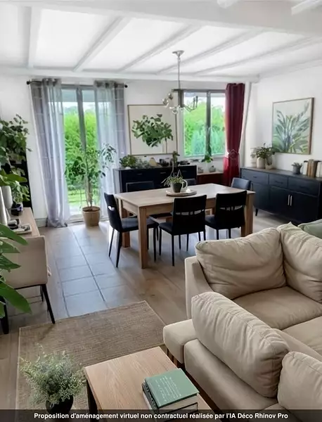 -Un vaste séjour lumineux avec coin salon salle à manger et cheminée conviviale,