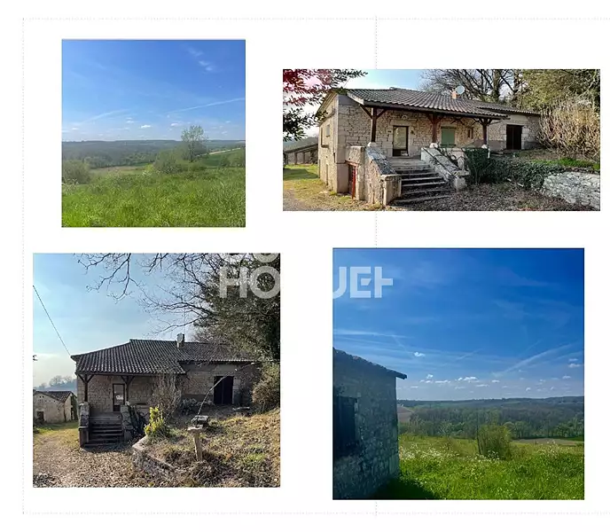 A deux pas d'un village avec commerce et école, ensemble à restaurer comprenant: -une maison d'habitation de 100 m2 sur caves, 4 pièces, salle d'eau wc. -un ancien fournil indépendant d 'environ 50 m2. La structure est saine, mais prévoir des travaux . Terrain plat offrant une vue magnifique sur la nature.Calme absolu. (7.00 % honoraires TTC à la charge de l'acquéreur.)