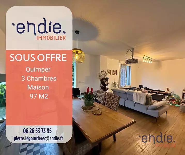 Idéalement située à Ergué-Armel, quartier recherché de Quimper, cette maison non mitoyenne offre un cadre de vie agréable, proche des commerces, des écoles et du centre-ville tout en étant au calme. Elle se compose de : 3 chambres existantes (possibilité d'en créer une 4e selon vos besoins) Salon-séjour lumineux de 26 m² exposé plein sud Cuisine de 12 m² ouverte sur le séjour Sous-sol complet offrant de nombreuses possibilités d'aménagement (pièce supplémentaire, atelier, buanderie ) Garage intégré et local technique Les atouts : Grand jardin clos de plus de 600 m², sans vis-à-vis, idéal pour profiter des beaux jours Pompe à chaleur neuve et menuiseries récentes pour de bonnes performances énergétiques Travaux de finition à prévoir, parfait pour personnaliser votre futur chez-vous Beau potentiel d'agrandissement et de valorisation Un bien rare sur le secteur, à découvrir sans tarder ! - Visite Virtuelle sur demande . Contactez votre conseiller Endie Immobilier : Pierre LE GOURRIEREC - EI - 06 26 53 73 95 - Agent commercial indépendant Ville du greffe : QUIMPER RSAC N° 948 095 740 - Le barème de nos honoraires est disponible sur (réf. 030094843) (Les informations sur les risques auxquels ce bien est exposé sont disponibles sur le site Géorisques : http://www.georisques.gouv.fr)