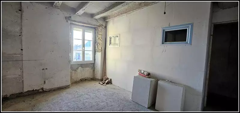 Cette maison est un projet de rénovation complet : électricité, plomberie, sols, murs, plafonds, cuisine et salle d'eau. Tout est à imaginer et à réaliser pour façonner un espace unique et moderne, tout en respectant le charme d'une maison de bourg.
