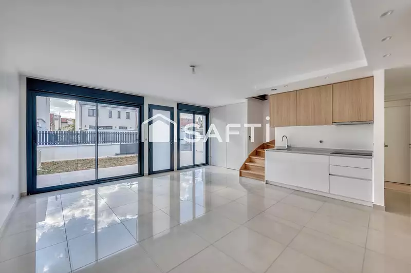 Cette maison entièrement réhabilitée, offrant 97 m² de confort et de modernité, avec jardin et emplacement de stationnement privatif.