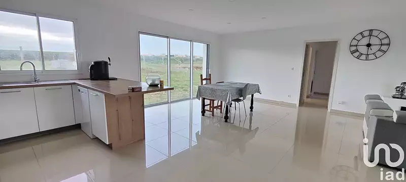 La maison offre une belle pièce de vie lumineuse d’environ 47 m², réunissant salon, salle à manger et cuisine ouverte, idéale pour des moments conviviaux en famille.