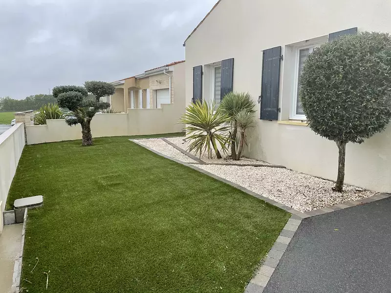 Villa à Ciré-d'Aunis de sept ans, sous garantie décennale, de 98 mètres carrés habitables avec son garage attenant de 24 mètres carrés. La maison comprend 4 pièces : un espace de vie sous un plafond cathédral, comprenant la cuisine ouverte et aménagée, ainsi que l'espace salon-salle à manger. Les trois chambres sont lumineuses. Une salle de bains avec douche et baignoire, ainsi qu'un toilette. La piscine est chauffée et protégée. L'espace extérieur est paysagé avec goût. Chauffage au sol.
