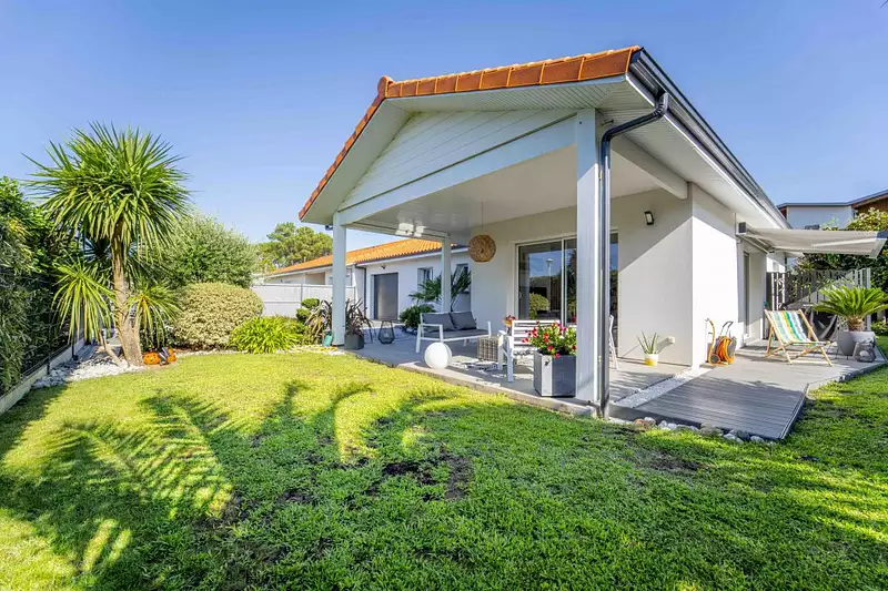 Située dans un quartier calme de Biscarrosse, cette maison contemporaine de 98 m², construite en 2018, offre confort et modernité.