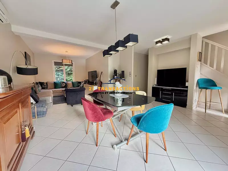 La cuisine aménagée, les ouvertures en PVC/Aluminium avec double vitrage, ainsi que la vue dégagée sur le jardin confèrent à cette maison une ambiance chaleureuse et moderne. La terrasse de 40 m², parfaitement orientée, est un espace idéal pour des moments de détente inoubliables.