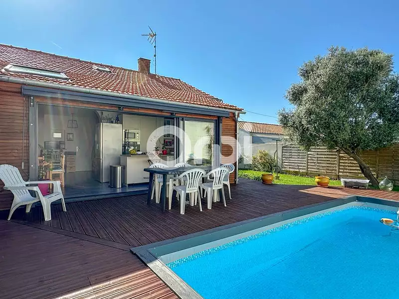 EXCLUSIVITE ! Située à ROCHEFORT, Quartier Anatole France, Maison de faubourg entièrement rénovée avec goût. Elle se compose d'une pièce de vie traversante avec cheminée insert, cuisine aménagée et équipée ouverte sur le jardin , et deux chambres, WC séparés, salle d'eau et salle de bains. 3ième chambre / bureau sous combles. Garage. Joli jardin clos avec piscine hors sol, Parcelle de 380 m² avec stationnement possible sur la parcelle en plus du garage, Rare dans le faubourg !
