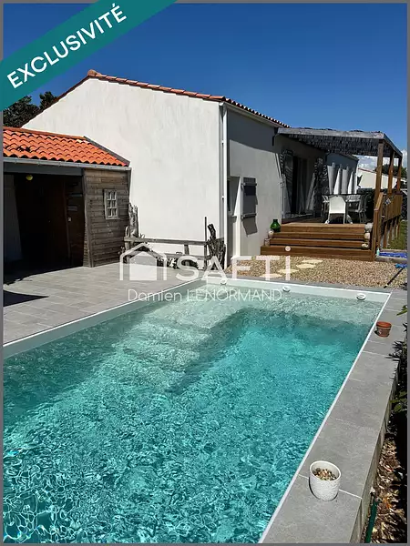 LES SABLES VIGNIERS , proche de la plage à pied , emplacement calme , proche piste cyclable jolie maison construite en 2021 comprenant entrée sur pièce de vie avec cuisine ouverte de 40,37m2 avec un accès sur la terrasse bois , une suite parentale de 11,60m2 , un couloir desservant trois chambres de 10,29 -11,01 et 11,67m2 avec placard , une salle de douche de 5,93m2 et toilette séparé de 1,83m2 , un cellier garage à vélo de 10m2 , une cuisine d'été carrelée et sa piscine chauffée de 6x3m avec son volet roulant électrique , huisseries en doubles vitrages pvc blanc , volets battants en bois, chauffage par le sol avec pompe à chaleur ainsi que la production d'eau chaude . Maison raccordée à la fibre et au tout à l'égout. Maison avec sa garantie décennale valable jusqu'en 2031. Terrain clos et arborées de 517m2