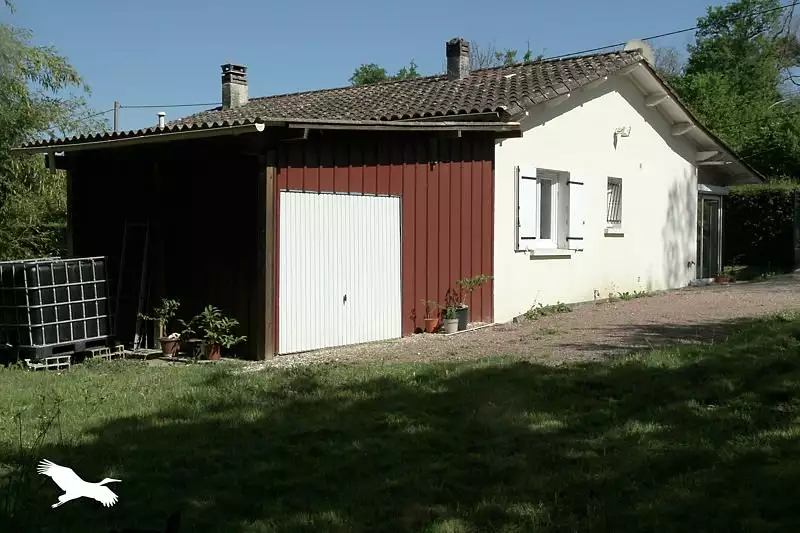 Proche MONTPON, maison de plain pied comprenant cuisine équiée, grand séjour avec poêle à bois, cellier, 2 chambres, salle d'eau, wc. Garage, l'ensemble édifié sur 2496m² ( chauffe eau thermodynamique par panneaux solaires ) . Proposition d'aménagement virtuel non contractuelle en dernière photo.