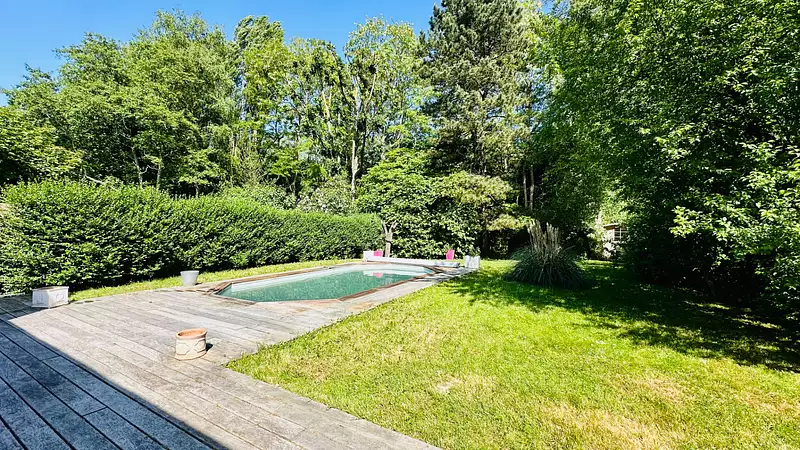 Bondues - Bois d'Achelles Laissez vous séduire par cette lumineuse maison semi individuelle de 100m² érigée sur une parcelle de 600 m² dans un écrin de verdure. Elle s'ouvre sur une entrée avec vestiaire, un salon séjour avec cheminée et une très jolie cuisine ouverte. Un grand palier pouvant servir de bureau/salle de jeux dessert 3 chambres et une salle de bains complète. Un garage, du stationnement privative ainsi qu'un magnifique jardin paysager avec piscine agrémentent cette agréable maison. (2.98 % honoraires TTC à la charge de l'acquéreur.) CLAIRE LEBAS (EI) Agent Commercial - Numéro RSAC : - .