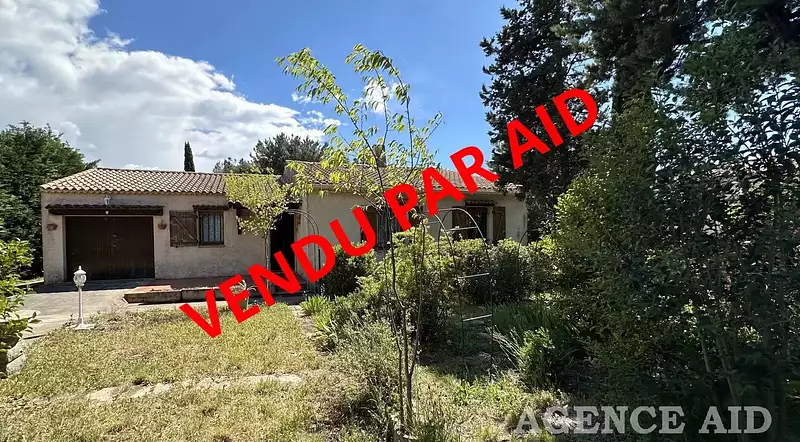Villa T4 plain-pied Cuges Les Pins EN EXCLUSIVITE secteur résidentiel, proximité commodités facile d'accès,1921m2 de terrain plat, clos, entièrement arboré et paysagé de diverses essences méditerranéennes (oliviers, pins, fruitiers, massifs), exposé plein sud, villa T4 de plain pied, construction traditionnelle de 1986 à remettre au goût du jour, beau potentiel. Elle se compose d'un hall d'entrée, une pièce à vivre donnant sur terrasse et jardin, cuisine équipée meubles en bois teinté, porte fenêtre sur extérieur, 3 chambres avec placards de rangement, une pièce pouvant faire office de bureau ou petite chambre d'appoint avec accès direct au garage, salle d'eau faïencée avec wc douche italienne, rangements, wc séparé, prestations simple carrelages au sol, plancher isolé, porte blindée