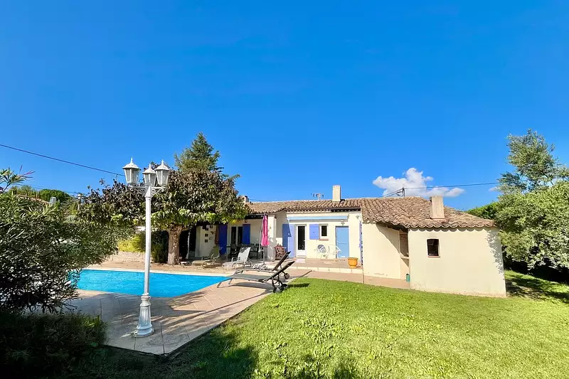 Située dans un quartier calme et agréable, cette villa de plain-pied de 99m² offre un beau jardin arboré sur un terrain de 1 009 m² avec piscine et terrain de boules.