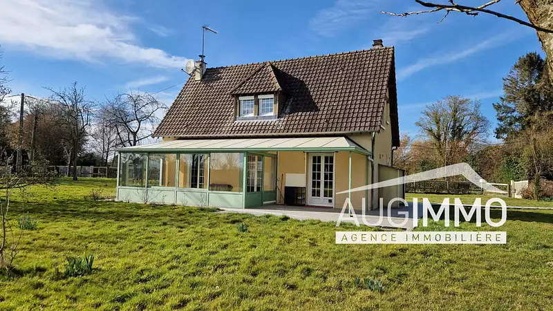 A moins de 10 MN du bourg de MOYAUX. Dans une impasse tranquille. Environnement Campagne. Belle dépendance à usage de garages avec 2 portes électrique. Portail automatisé. Au rdc: Entrée, séjour salon avec poêle a bois, cuisine ouverte, véranda, chaufferie, WC. A l'étage: Palier, 3 chambres, salle d'eau douche et WC. Terrain d'environ 4 380 m². (4.71 % honoraires TTC à la charge de l'acquéreur.)