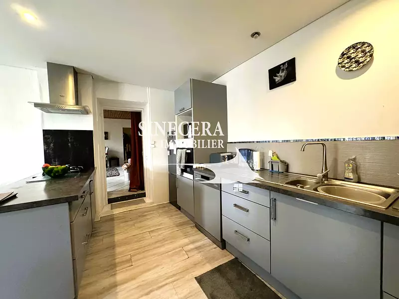 Cette maison d'environ 100m2 sur 3 niveaux se compose : Au rez-de-chaussée, une cuisine américaine et équipée, un grand salon donnant sur une magnifique terrasse, une salle d'eau avec wc.