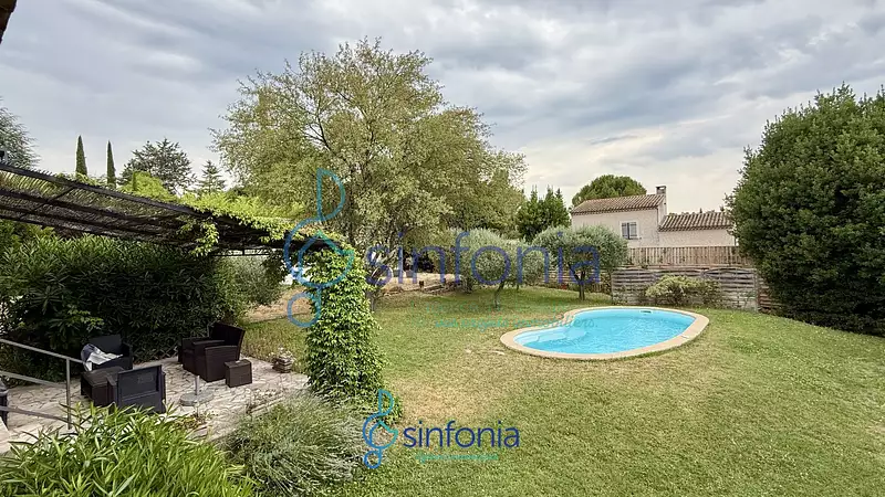 À seulement 15 minutes du coeur historique d'Uzès, découvrez une maison de plain-pied, baignée de lumière. Un jardin soigné, une terrasse plein sud, une piscine chauffée... L'intérieur, parfaitement agencé, vous accueille avec une pièce de vie chaleureuse autour du poêle à bois, une cuisine équipée et une salle à manger conviviale tournée vers l'extérieur. La suite parentale donnant sur le jardin vous séduira par son atmosphère paisible, son dressing et sa salle d'eau. Deux autres chambres et une salle de bains permettent d'accueillir famille ou amis dans un confort absolu. Et ce n'est pas tout : trois grands garages, un espace d'été à imaginer selon vos envies (atelier, bureau, maison d'invités'), et de nombreux équipements pensés pour votre bien-être (climatisation, double vitrage, volets roulants électriques...). Que vous cherchiez une résidence principale au calme ou un pied-à-terre proche de toutes les commodités, cette maison a tout pour vous séduire. Les informations sur les risques auxquels ce bien est exposé sont disponibles sur le site Géorisques : www.georisques.gouv.fr