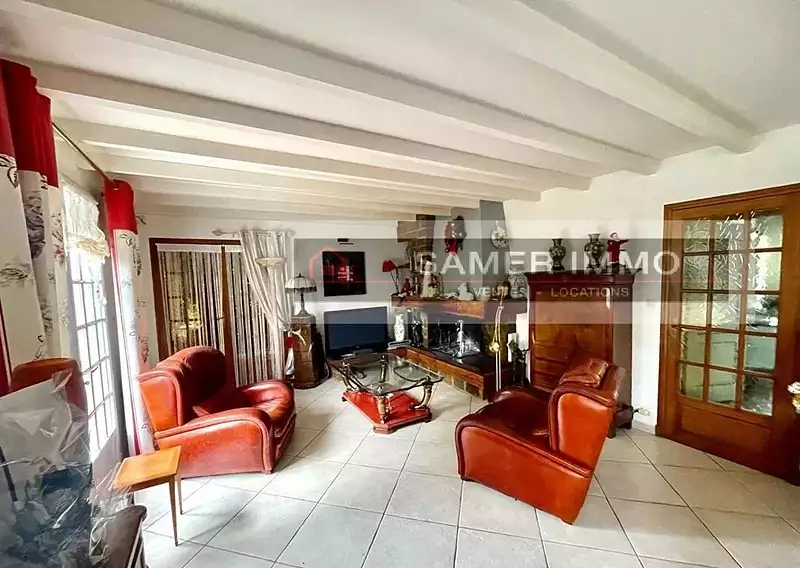 AUCUN TRAVAUX POUR CE PAVILLON INDIVIDUEL DE PLAIN PIED CONSTRUCT. TRAD. PROCHE DE TOUTES COMMODITES OFFRANT AU RDC HALL SEJOUR SALON CHEM. CUISINE EQUIPEE 3 CHS. 1 SDB BUREAU S/SOL LINGERIE JARDIN DOUBLE GARAGE & STOCKAGE CE