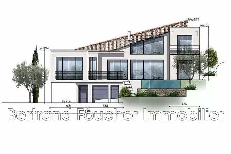 Sur une parcelle de 1 200 m² en bout d'impasse et jouxtant un espace boisé classé bénéficiant d'une magnifique VUE MER et d'une triple orientation pour profiter du soleil du matin jusqu'au soir au calme et dans la verdure.