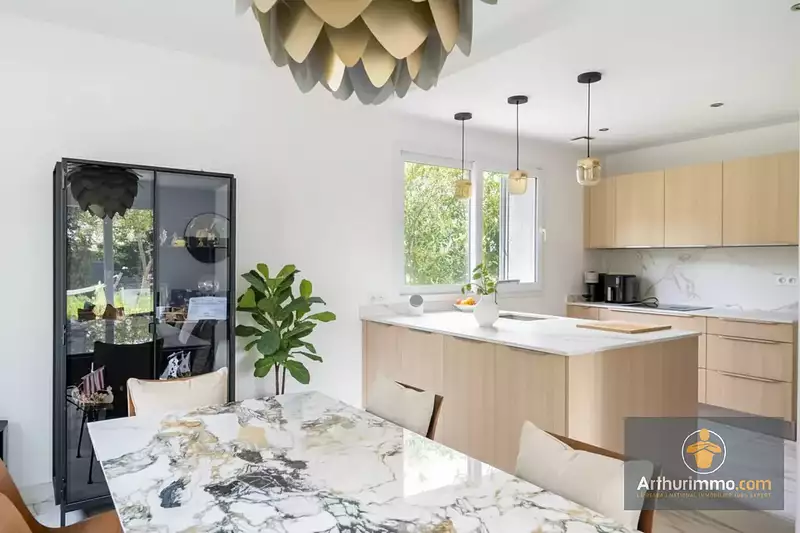 Derrière une architecture sobre et élégante, cette maison parfaitement entretenue développe près de 195 m² habitables, offrant de beaux volumes et une luminosité naturelle exceptionnelle.