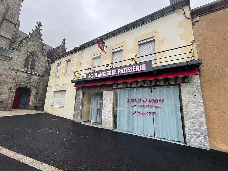 Situé dans le bourg de Corlay, ensemble immobilier composé de deux parties : - un immeuble comprenant un local commercial en rez de chaussée (ancienne boulangerie), une réserve et fournil, une cuisine et un salon. A l'étage, 4 chambres, une salle d'eau et un wc. Grenier au dessus. Cour sur l'arrière. - Maison à rénover comprenant au rez de chaussée : une cuisine, séjour-salon. A l'étage , trois chambres, une salle de bains, grenier. Terrasse sur l'arrière. Idéal pour un investissement professionnel et locatif. (7.00 % honoraires TTC à la charge de l'acquéreur.)