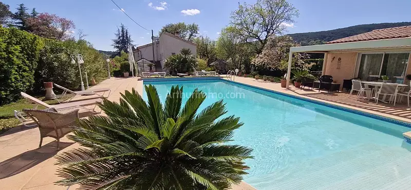 Propriete de 3 logements avec piscine - draguignan sur la commune de draguignan, découvrez cette belle propriété situé dans un quartier calme et recherché, à quelques minutes du centre ville. sur un terrain de 1660 m2, le bien comporte trois logements distincts. la maison principale est composée de deux niveaux de 130 m2 chacun : - le rez-de-chaussée dispose d'un vaste séjour avec cuisine de 52 m², d'une chambre, d'un dressing, d'une salle d'eau, d'une salle de bain, d'un toilette indépendant et d'un garage. - l'étage est composé d'un séjour avec cuisine donnant sur la terrasse, d'une chambre, d'une salle de bain et d'une grande suite avec dressing et salle de bain. sur la partie arrière du terrain et juste devant une très grande piscine (15 m x 7,50 m), vous trouverez une maison annexe d'environ 90 m², composé comme suit : un séjour/ véranda de 31 m², une salle à manger avec cuisine ouverte et une suite avec salle d'eau. produit rare à la vente avec potentiel important. a visiter rapidement. -