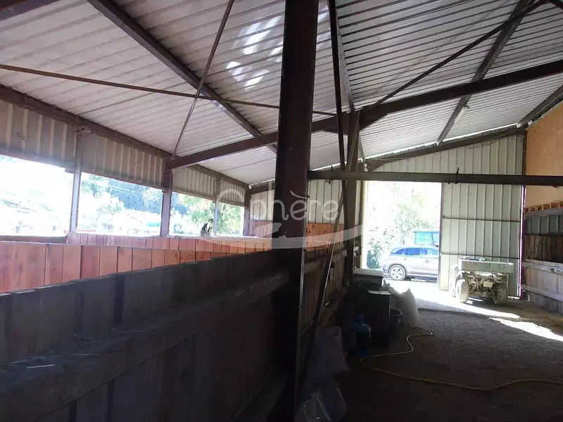 Hangar agricole avec panneaux photovoltaïques 04/2024, sources, puits, un appartement en auto construction bois, d'une surface de 450 m² au total et plus d'1 hectares de terres pour prairies, permaculture.