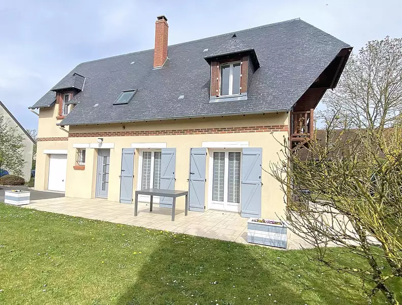 Maison/villa 5 pièces une maison edifiee sur un terrain de 645 m2 composee : au rdc: une entree avec placard, une piece de vie avec cheminee insert donnant sur terrasse, une cuisine ouverte equipee, amenagee, une salle de douche et buanderie, wc separe, garage, et cave. a l'etage: un degagement desservant une chambre avec grenier (possibilite dressing), une salle de bains, une chambre, une chambre, une chambre avec balcon expose sud, wc separe, -