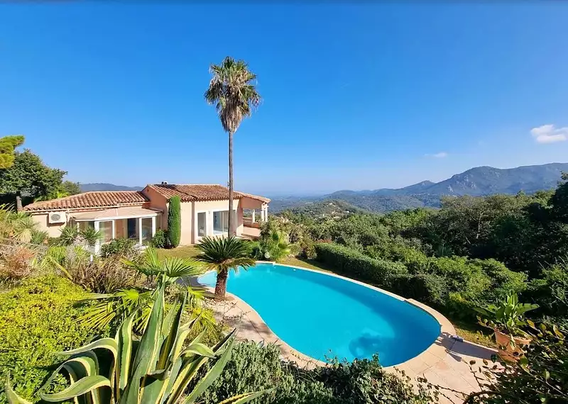 Magnifique villa avec piscine de 5 pièces d'environ 180m² dans un cadre de vie exceptionnel. Véritable produit coup de cœur avec son séjour qui offre un magnifique panorama sur les iles de Lérins et la corniche de l’Esterel.