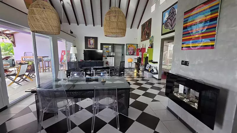 Située dans un lotissement calme et résidentiel des Trois-Îlets, à proximité immédiate des plages, du golf et de l'ensemble des loisirs prisés de la station balnéaire, cette villa atypique se distingue par son architecture unique, ses volumes généreux et son environnement naturel préservé et sans vis-à-vis.