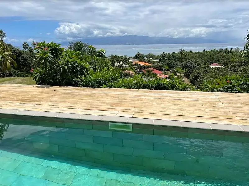 Belle villa architecture moderne , neuve de 300 M2 sur 3 niveaux , sur les hauteurs de Moorea avec vue sublime de Tahiti