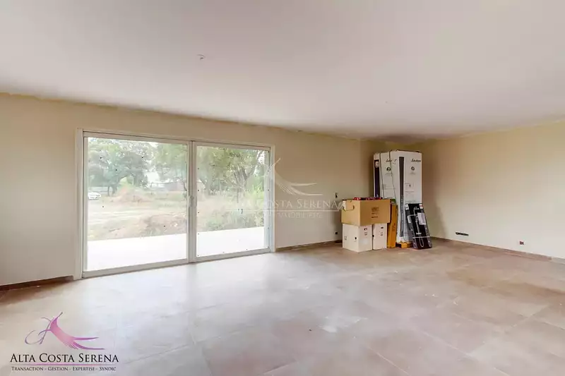 Ce bien en cours de finition se compose d'un hall d'entrée avec vestiaire ouvrant sur un séjour-salon climatisé de 38 m² et d'une cuisine avec cellier.