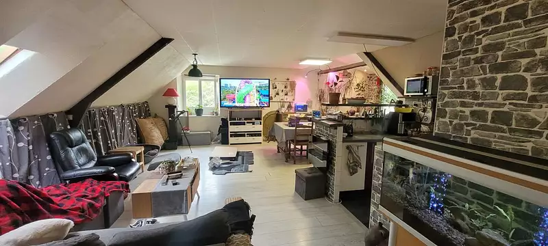 A l'étage : une grande pièce de vie et cuisine (accès terrasse et jardin)