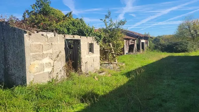Grange de stockage mitoyenne d'environ 100 m² au sol, dépendances non attenantes, eau, électricité, étang, sur plus de 2,5 hectares de terrain en zone naturelle.